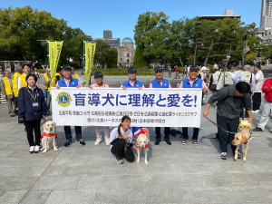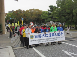 10月11日、広島紅葉ライオンズクラブ様主催のもと、同ゾーンの8クラブが参加し、盲導犬ユーザー様と、器楽隊の音楽に合わせ本通りアーケードをパレードし、盲導犬に対する理解と必要性を訴えました。