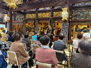 廿日市市光明寺において、法話会を開催致しました。 この度は、真言宗正覚院の菅梅弘順住職を法話講師としてお招きしました。高野山のお話や宗派の作法の違いなど有意義な講話を頂き、感謝申し上げる次第です。