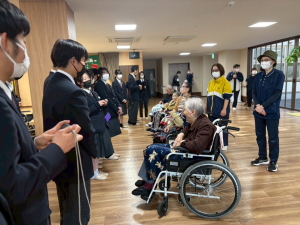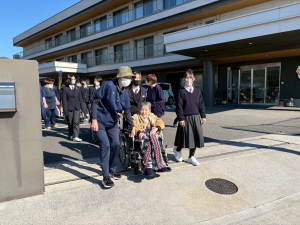 設内 を隅々まで丁寧に説明して頂き大変勉強しになりました。 最後に、今回から参加生徒9名全員 に学んだ事に ついて何を感じどうしたら良いかなどを発表して頂きました。このような発表は、今後の生徒の高齢者に対する理解や高齢化社会の勉強に非常に役に立